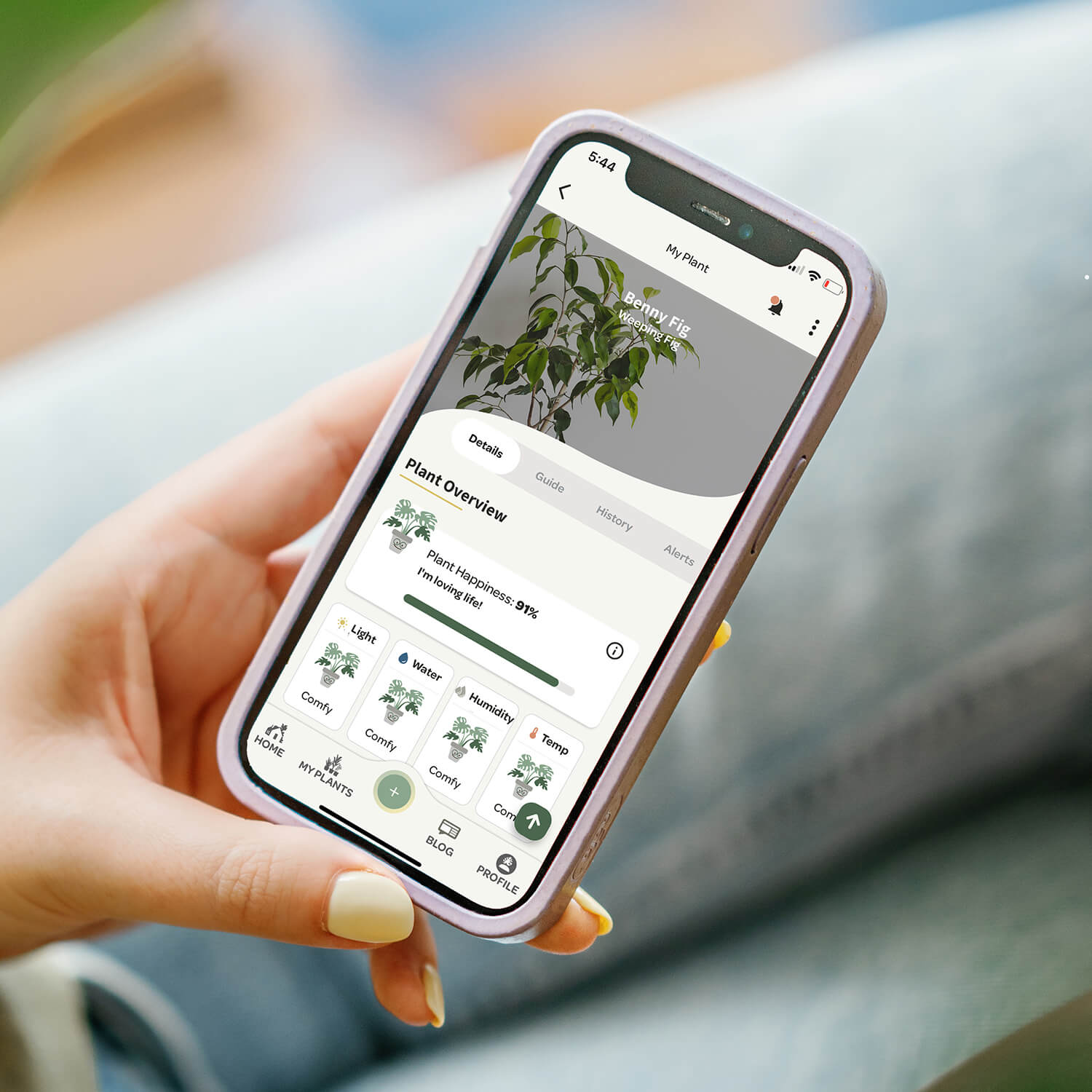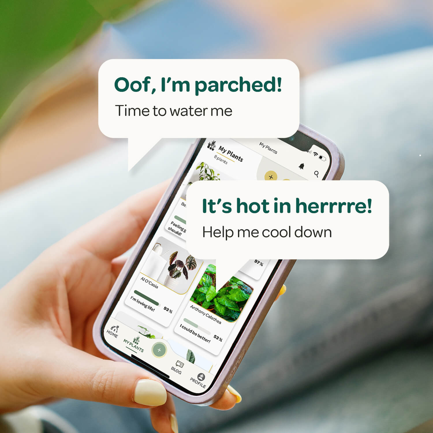 Give your plants a voice! When your plant needs water or a change of conditions, you'll be notified via your phone.